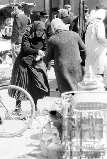 demizson fonott bútor kendő parasztasszony bicikli piac Szekszárd Tolna megye Magyarország 1962 Bakó JenőFotó részletei