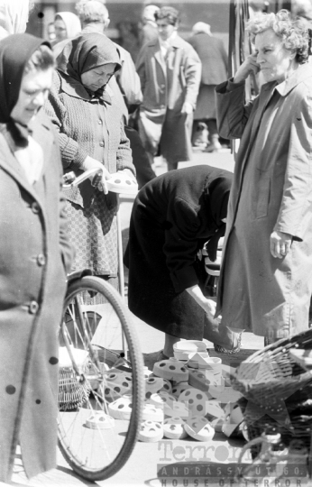 kosár kendő parasztasszony kerámia piac Szekszárd Tolna megye Magyarország 1962 Bakó JenőFotó részletei