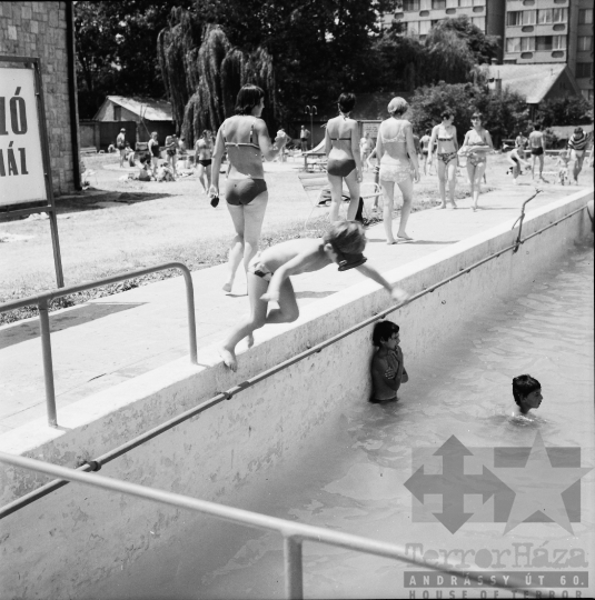 nyaralás nyár strand fürdőruha bikini medence búvárfelszerelés gyerek Szekszárd Tolna megye Magyarország 1975 Bakó JenőFotó részletei