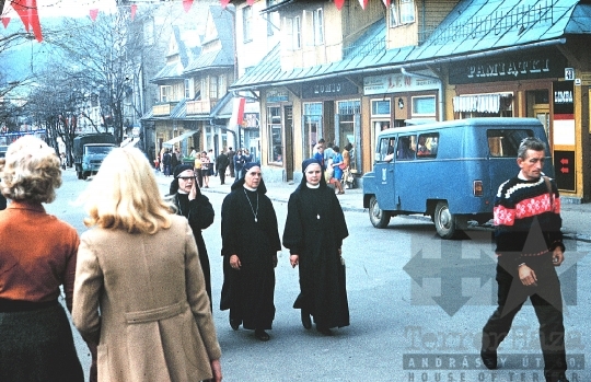 kirándulás apáca belváros furgon zászló Magas-Tátra Lengyelország 1975 Bakó JenőFotó részletei
