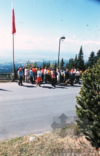 kirándulás csoportkép zászló Csehszlovákia Magas-Tátra Szlovákia 1975 Bakó JenőFotó részletei