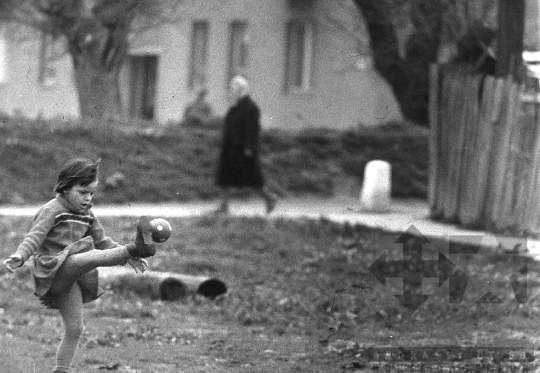 utcakép gyerek labda Szekszárd Tolna megye Magyarország 1967 Bakó JenőFotó részletei