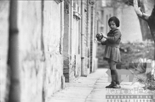 utcakép gyerek labda Szekszárd Tolna megye Magyarország 1967 Bakó JenőFotó részletei