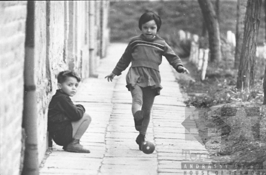 utcakép gyerek labda Szekszárd Tolna megye Magyarország 1967 Bakó JenőFotó részletei