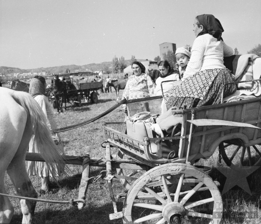 állat szekér kendő gyerek roma vásár Szekszárd Tolna megye Magyarország 1980 Bakó Jenő