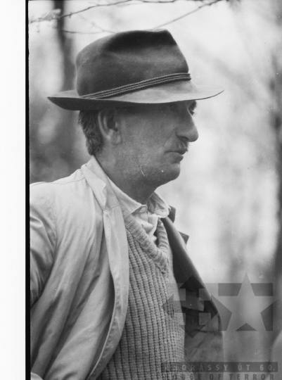 AZONOSÍTÓ: THM-BJ-00717 Férfi beszédet mond - transzparensen felirat: "Munkánk minőségének és hatékonyságának javításával, többletvállalásokkal készülünk a NAGY OKT. SZOC. FORR. 60. évfordulójára". [Az októberi orosz forradalom (kommunista propagandában: nagy októberi szocialista forradalom) 1917. november 6–12. (október 24–30.) között zajlott, amelynek során a bolsevikok a Téli Palota ostroma után az ott székelő Ideiglenes Kormány tagjait letartóztatták, és Lenin vezetésével, akit a Népbiztosok Tanácsa elnökévé választottak, puccsal átvették a hatalmat. Hazánkban ez a nap 1950-től 1989-ig pártállami ünnep volt.] [A szocialista brigádmozgalom szovjet mintára az 1950-es évek végén kezdett kibontakozni Magyarországon, és rendszerváltoztatáskor szűnt meg. Kezdetben csak az ipari üzemekben és gyárakban alakultak meg a brigádok, majd az agráriumban és a hivatali szférában is létrejöttek. A mozgalom jelszava: „Szocialista módon dolgozni, tanulni és élni” volt.] HELYSZÍN: Szekszárd, Tolna megye DÁTUM: 1977 FOTÓS: Bakó Jenő