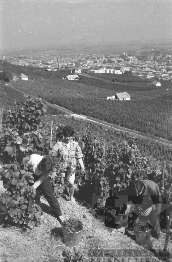 szőlőföld szőlőtőke szüret vödör Szekszárd Tolna megye Magyarország 1966 Bakó JenőFotó részletei