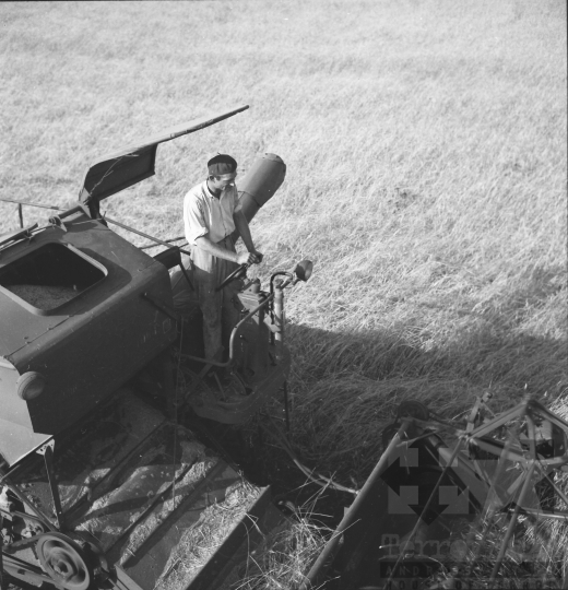aratás svájci sapka kombájn aratógép gabona Nagydorog Tolna megye Magyarország 1966 Bakó JenőFotó részletei