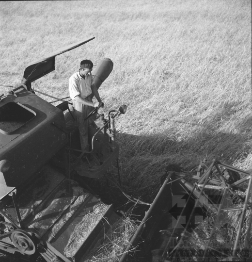 aratás svájci sapka kombájn aratógép gabona Nagydorog Tolna megye Magyarország 1966 Bakó JenőFotó részletei