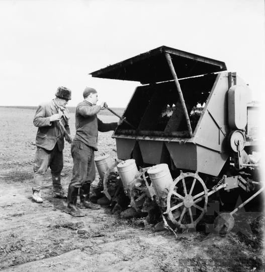 termelőszövetkezet svájci sapka vetőgép Fadd Tolna megye Magyarország 1966 Bakó JenőFotó részletei