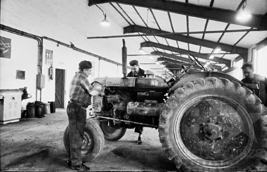 termelőszövetkezet traktor szerelés műhely svájcisapka Bátaszék Tolna megye Magyarország 1967 Bakó JenőFotó részletei