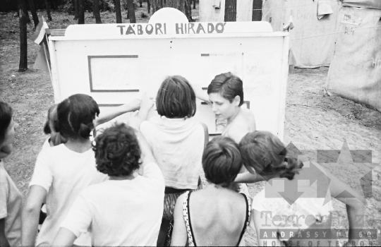 KISZ termelőszövetkezet építőtábor tábori híradó tábla ifjúsági mozgalmi élet Gyapa Tolna megye Magyarország 1967 Bakó JenőFotó részletei