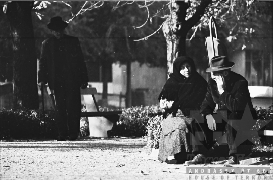 park pad kendő kalap öregség Szekszárd Tolna megye Magyarország 1967 Bakó JenőFotó részletei