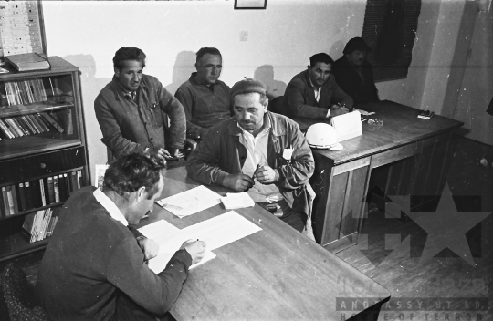 termelőszövetkezet értekezlet iroda svájcisapka Regöly Tolna megye Magyarország 1967 Bakó JenőFotó részletei