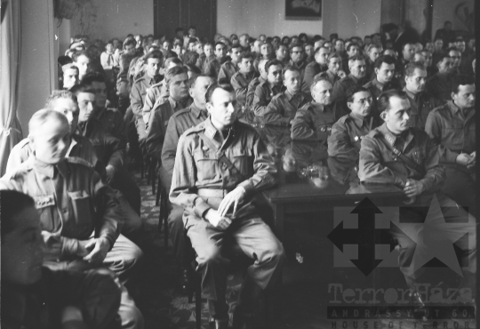 karhatalom egyenruha munkásőrség munkásőr gyűlés Szekszárd Tolna megye Magyarország 1968 Bakó JenőFotó részletei