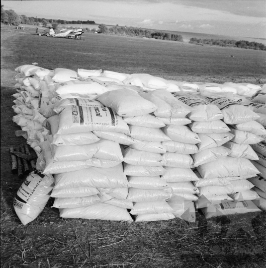 növényvédelem műtrágya repülőtér zsák Őcsény Tolna megye Magyarország 1968 Bakó JenőFotó részletei