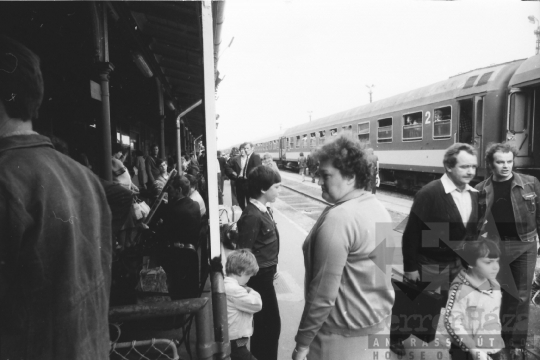 pályaudvar peron vasút szállítás szerelvény gyerek Dombóvár Tolna megye Magyarország 1981 Bakó JenőFotó részletei