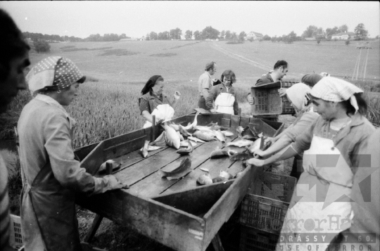 termelőszövetkezet halász hal láda kendő halászat Tamási Tolna megye Magyarország 1981 Bakó JenőFotó részletei