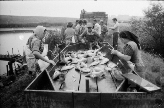 termelőszövetkezet halász hal láda kendő halászat Tamási Tolna megye Magyarország 1981 Bakó JenőFotó részletei