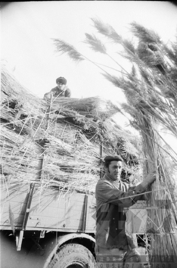 nádfeldolgozás nád kéve teherautó Tolna-Mözs Tolna megye Magyarország 1981 Bakó JenőFotó részletei