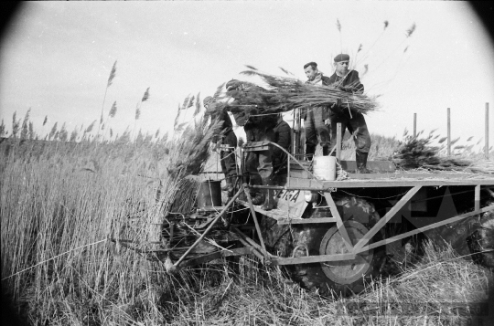 nádfeldolgozás nád aratás aratógép munkagép Tolna-Mözs Tolna megye Magyarország 1981 Bakó JenőFotó részletei