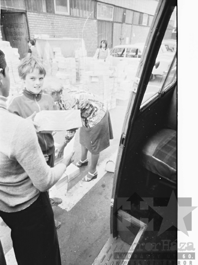 AZONOSÍTÓ: THM-BJ-00465 Férfi asszonyokat köszönt virággal a gyár bejáratánál. [A nemzetközi nőnap szovjet mintára Magyarországon 1948-tól egészen a rendszerváltoztatásig kötelező ünnepnap volt március 8-án.] [A Tolnai Selyemfonógyárat 1900-ben Bezerédj Pál alapította. A gyár fő profilja a természetes selyemszálak gyártása volt. 1948-ban államosították, majd az 1955-ben megalakított Magyar Selyemipar Vállalathoz csatolták. 1970-ben megszűnt a selyemfonás, helyette szintetikus szövetek gyártása folyt. 1991-ben privatizálták.] HELYSZÍN: Tolna, Tolna megye DÁTUM: 1977 FOTÓS: Bakó Jenő