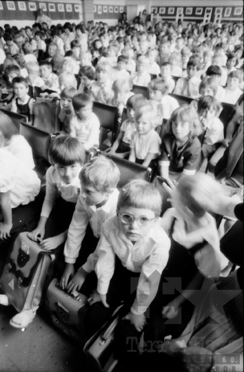 általános iskola diák iskola ünnepség évnyitó ünneplő iskolatáska Tolna megye Magyarország 1981 Bakó JenőFotó részletei