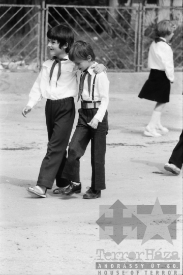 általános iskola diák iskola ünnepség évnyitó ünneplő kisdobos úttörő egyenruha Tolna megye Magyarország 1981 Bakó JenőFotó részletei