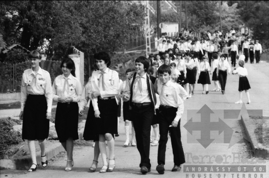 általános iskola diák iskola ünnepség évnyitó ünneplő kisdobos úttörő egyenruha Tolna megye Magyarország 1981 Bakó JenőFotó részletei