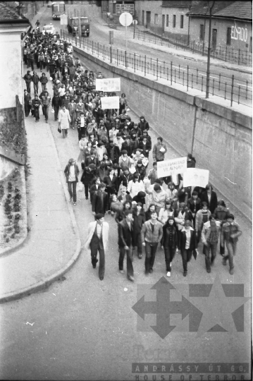 ifjúsági mozgalmi élet KISZ felvonulás Dunaföldvár Tolna megye Magyarország 1982 Bakó JenőFotó részletei