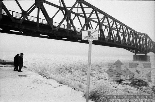 híd jégzajlás tájkép Dunaföldvár Tolna megye Magyarország 1982 Bakó JenőFotó részletei