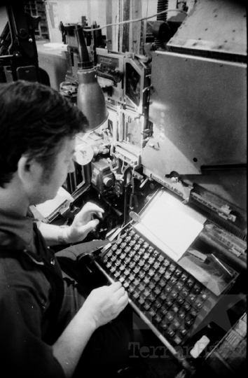 nyomdaipar nyomda nyomdász ólomszedés szedőgép billentyűzet Szekszárd Tolna megye Magyarország 1982 Bakó JenőFotó részletei