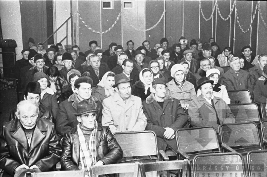 AZONOSÍTÓ: THM-BJ-00715 A rendezvény résztvevői. [A szocialista brigádmozgalom szovjet mintára az 1950-es évek végén kezdett kibontakozni Magyarországon, és rendszerváltoztatáskor szűnt meg. Kezdetben csak az ipari üzemekben és gyárakban alakultak meg a brigádok, majd az agráriumban és a hivatali szférában is létrejöttek. A mozgalom jelszava: „Szocialista módon dolgozni, tanulni és élni” volt.] HELYSZÍN: Szekszárd, Tolna megye DÁTUM: 1977 FOTÓS: Bakó Jenő