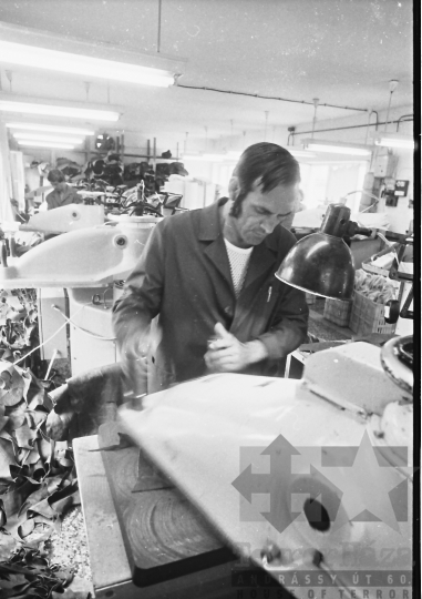 bőripar cipőgyár bőrszabászat cipő Bonyhád Tolna megye Magyarország 1983 Bakó JenőFotó részletei