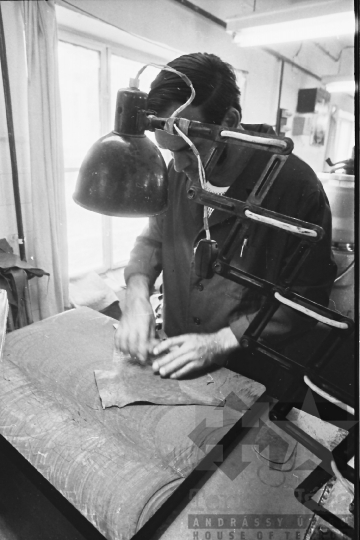 bőripar cipőgyár bőrszabászat cipő Bonyhád Tolna megye Magyarország 1983 Bakó JenőFotó részletei