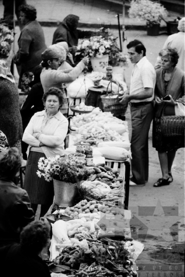 AZONOSÍTÓ: THM-BJ-00717 Férfi beszédet mond - transzparensen felirat: "Munkánk minőségének és hatékonyságának javításával, többletvállalásokkal készülünk a NAGY OKT. SZOC. FORR. 60. évfordulójára". [Az októberi orosz forradalom (kommunista propagandában: nagy októberi szocialista forradalom) 1917. november 6–12. (október 24–30.) között zajlott, amelynek során a bolsevikok a Téli Palota ostroma után az ott székelő Ideiglenes Kormány tagjait letartóztatták, és Lenin vezetésével, akit a Népbiztosok Tanácsa elnökévé választottak, puccsal átvették a hatalmat. Hazánkban ez a nap 1950-től 1989-ig pártállami ünnep volt.] [A szocialista brigádmozgalom szovjet mintára az 1950-es évek végén kezdett kibontakozni Magyarországon, és rendszerváltoztatáskor szűnt meg. Kezdetben csak az ipari üzemekben és gyárakban alakultak meg a brigádok, majd az agráriumban és a hivatali szférában is létrejöttek. A mozgalom jelszava: „Szocialista módon dolgozni, tanulni és élni” volt.] HELYSZÍN: Szekszárd, Tolna megye DÁTUM: 1977 FOTÓS: Bakó Jenő