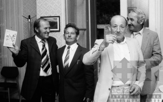 AZONOSÍTÓ: THM-BJ-00740 Zenészek asztal mellett játszanak. [TOTÉV: Tolna megyei Tatarozó és Építő Vállalat 1950. október végén a megyeszerte működő kisipari szövetkezetek összevonásával alakult meg, 1968 közepére szocialista középvállalattá nőtte ki magát Tm. Tanácsi Építőipari Vállalat néven.] HELYSZÍN: Szekszárd, Tolna megye DÁTUM: 1977 FOTÓS: Bakó Jenő