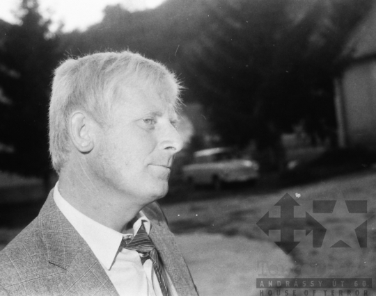 AZONOSÍTÓ: THM-BJ-00714 Férfi beszédet mond. [A szocialista brigádmozgalom szovjet mintára az 1950-es évek végén kezdett kibontakozni Magyarországon, és rendszerváltoztatáskor szűnt meg. Kezdetben csak az ipari üzemekben és gyárakban alakultak meg a brigádok, majd az agráriumban és a hivatali szférában is létrejöttek. A mozgalom jelszava: „Szocialista módon dolgozni, tanulni és élni” volt.] HELYSZÍN: Szekszárd, Tolna megye DÁTUM: 1977 FOTÓS: Bakó Jenő