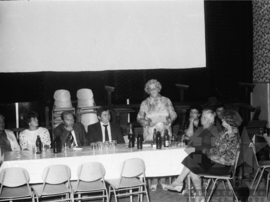 AZONOSÍTÓ: THM-BJ-00716 A rendezvény résztvevői. [A szocialista brigádmozgalom szovjet mintára az 1950-es évek végén kezdett kibontakozni Magyarországon, és rendszerváltoztatáskor szűnt meg. Kezdetben csak az ipari üzemekben és gyárakban alakultak meg a brigádok, majd az agráriumban és a hivatali szférában is létrejöttek. A mozgalom jelszava: „Szocialista módon dolgozni, tanulni és élni” volt.] HELYSZÍN: Szekszárd, Tolna megye DÁTUM: 1977 FOTÓS: Bakó Jenő