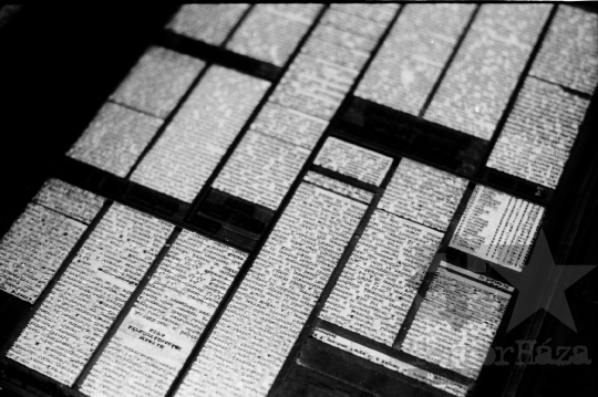 AZONOSÍTÓ: THM-BJ-00717 Férfi beszédet mond - transzparensen felirat: "Munkánk minőségének és hatékonyságának javításával, többletvállalásokkal készülünk a NAGY OKT. SZOC. FORR. 60. évfordulójára". [Az októberi orosz forradalom (kommunista propagandában: nagy októberi szocialista forradalom) 1917. november 6–12. (október 24–30.) között zajlott, amelynek során a bolsevikok a Téli Palota ostroma után az ott székelő Ideiglenes Kormány tagjait letartóztatták, és Lenin vezetésével, akit a Népbiztosok Tanácsa elnökévé választottak, puccsal átvették a hatalmat. Hazánkban ez a nap 1950-től 1989-ig pártállami ünnep volt.] [A szocialista brigádmozgalom szovjet mintára az 1950-es évek végén kezdett kibontakozni Magyarországon, és rendszerváltoztatáskor szűnt meg. Kezdetben csak az ipari üzemekben és gyárakban alakultak meg a brigádok, majd az agráriumban és a hivatali szférában is létrejöttek. A mozgalom jelszava: „Szocialista módon dolgozni, tanulni és élni” volt.] HELYSZÍN: Szekszárd, Tolna megye DÁTUM: 1977 FOTÓS: Bakó Jenő