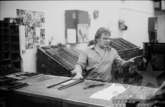 nyomdaipar nyomda sajtó nyomdász ólomszedés Szekszárd Tolna megye Magyarország 1986 Bakó JenőFotó részletei