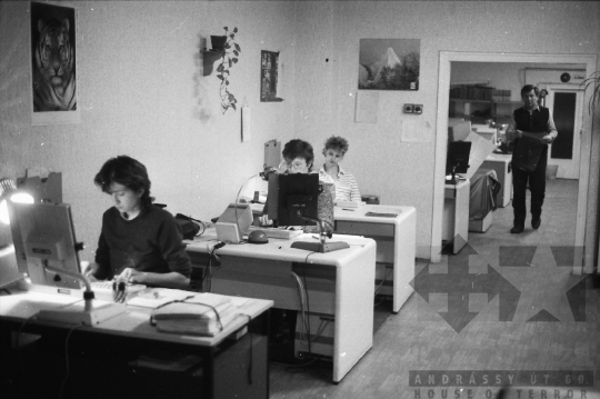 nyomdaipar nyomda sajtó nyomdász fényszedés fényszedőgép klaviatúra monitor Szekszárd Tolna megye Magyarország 1986 Bakó JenőFotó részletei