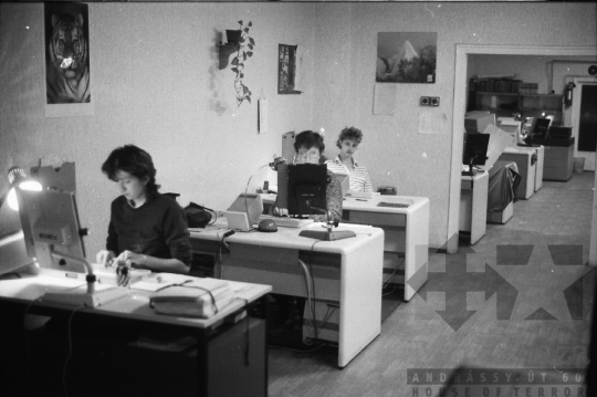 nyomdaipar nyomda sajtó nyomdász fényszedés fényszedőgép klaviatúra monitor Szekszárd Tolna megye Magyarország 1986 Bakó JenőFotó részletei