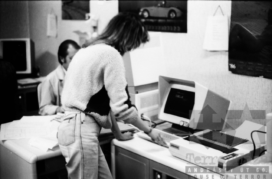 nyomdaipar nyomda sajtó nyomdász fényszedés fényszedőgép monitor klaviatúra nyomtató Miniprinter S Szekszárd Tolna megye Magyarország 1988 Bakó JenőFotó részletei