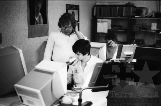 nyomdaipar nyomda sajtó nyomdász fényszedés fényszedőgép monitor klaviatúra Szekszárd Tolna megye Magyarország 1988 Bakó JenőFotó részletei