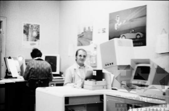nyomdaipar nyomda sajtó nyomdász fényszedés fényszedőgép monitor klaviatúra Szekszárd Tolna megye Magyarország 1988 Bakó JenőFotó részletei