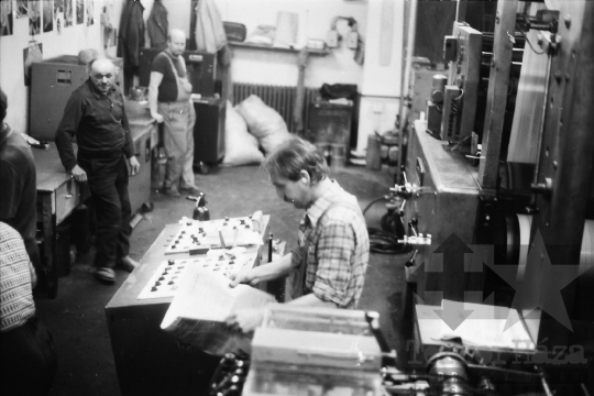 nyomdaipar nyomda nyomdász nyomtatás ofszet nyomdagép újság sajtó Szekszárd Tolna megye Magyarország 1988 Bakó JenőFotó részletei
