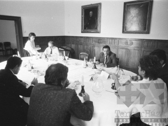 AZONOSÍTÓ: THM-BJ-00740 Zenészek asztal mellett játszanak. [TOTÉV: Tolna megyei Tatarozó és Építő Vállalat 1950. október végén a megyeszerte működő kisipari szövetkezetek összevonásával alakult meg, 1968 közepére szocialista középvállalattá nőtte ki magát Tm. Tanácsi Építőipari Vállalat néven.] HELYSZÍN: Szekszárd, Tolna megye DÁTUM: 1977 FOTÓS: Bakó Jenő