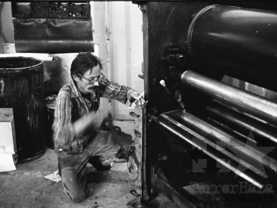 nyomdaipar nyomda nyomdász ofszet nyomdagép szerelés Szekszárd Tolna megye Magyarország 1988 Bakó JenőFotó részletei