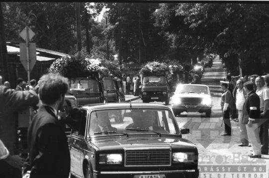 rendszerváltoztatás 1956 gyászünnep újratemetés temető gyászkocsi koszorú autó Budapest Pest megye Magyarország 1989 Bakó Jenő